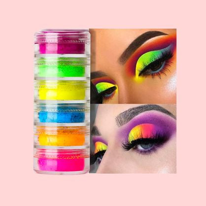 colores - 1 torre de pigmento neón de 6 tonos. 6 colores brillantes neón arco iris sombra de ojos en polvo. Sombras de ojos altamente pigmentadas con 6 sombras de ojos súper vibrantes: rojo rosa, naranja, amarillo, verde, azul, morado, puedes crear un look de verano súper divertido con este compacto juego de sombras de ojos. Crea el aspecto perfecto con nuestros pigmentos de neón. Su pigmentación es excelente.